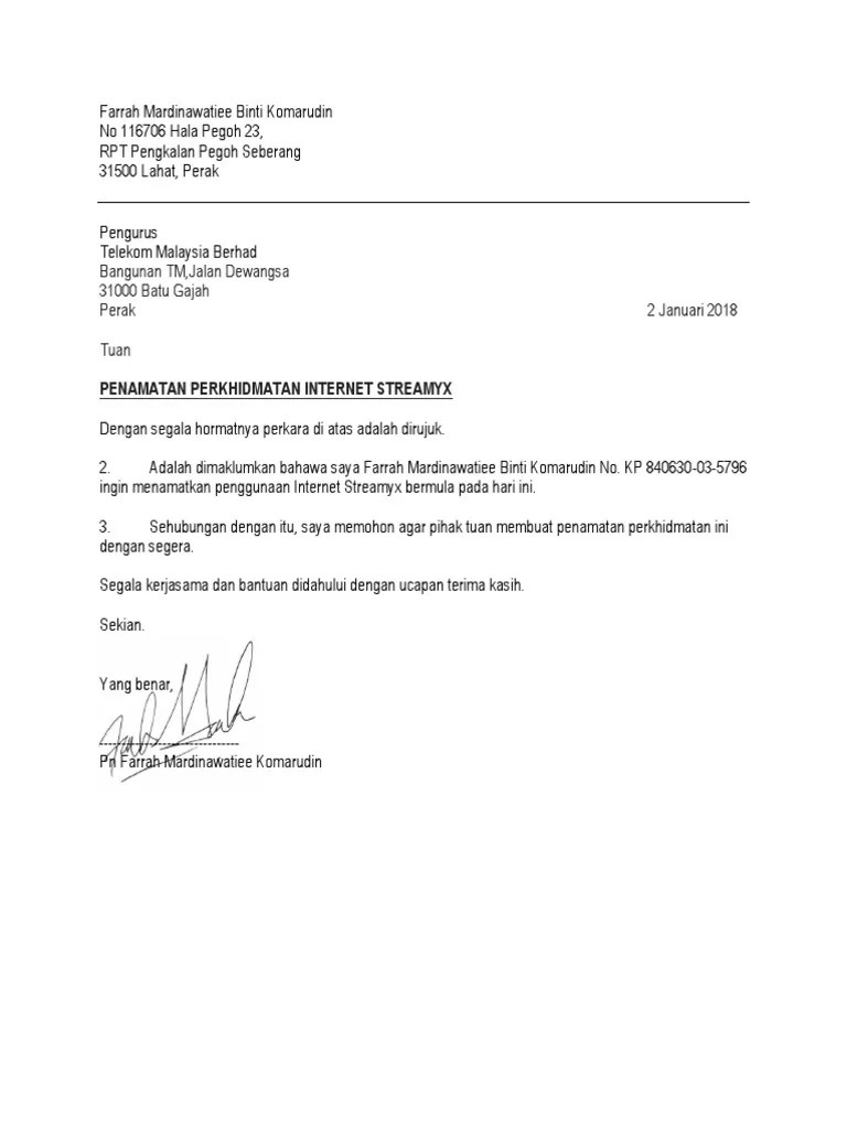 Contoh Surat Penamatan Perkhidmatan Internet / Contoh Surat Tamat Kontrak Mariodsxz